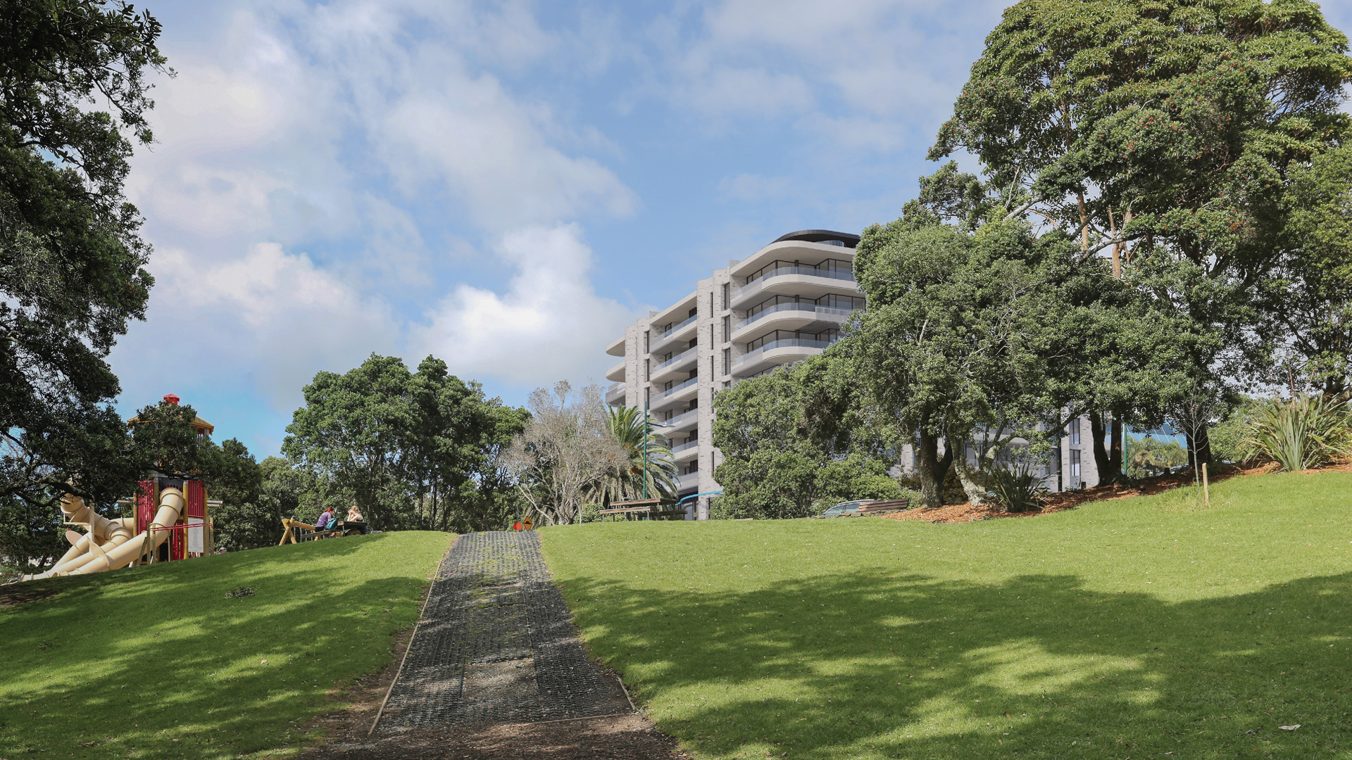 Reset were engaged by HND TS Ltd to provide specialist landscape architectural services and undertake the Resource Consent design and documentation as well as provide a Landscape and Visual Effects Assessment for ‘The Strand’ development in Takapuna. The development seeks to implement four mixed-use residential apartment buildings with associated ground floor retail on a large block of land in central Takapuna. Reset worked closely with the project team to develop a high-quality well-designed development suitable for the prominent site location.